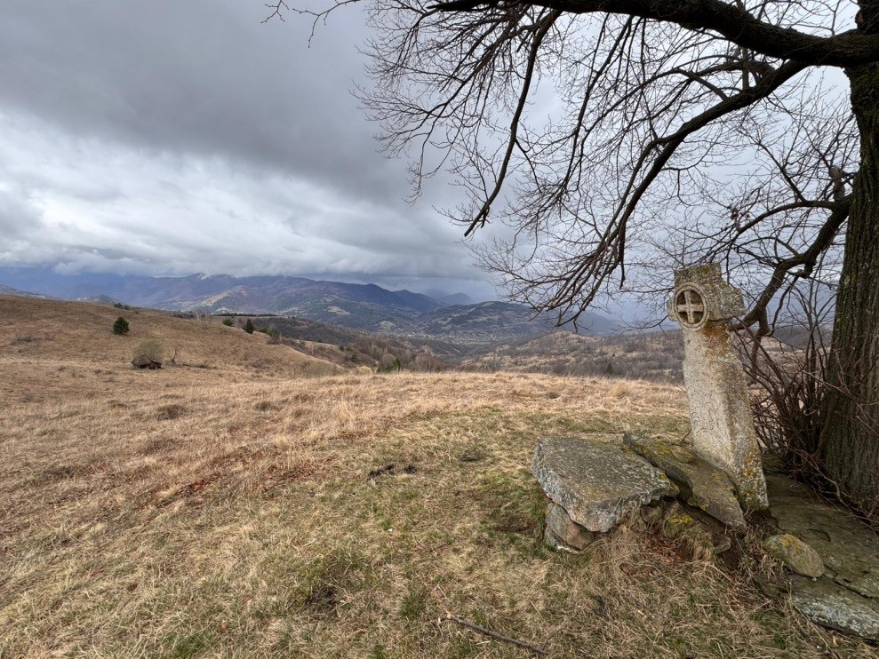 Pe față: S(-)AU RĂDICAT ACEASTĂ SFÂNTĂ CRUCE LA ANUL 1848 (...) ZIDITORI DUMA DĂMIAN VANDA (VAIDA?) ION ȘI MATEIU DUMA ION DUMA MIHĂILĂ DUMA ȘTEFAN DUMA PĂTRU DUMA ION DUMA GAVRILĂ ȘI ION.